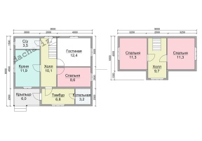 | Крыша | Двускатная, ломаная или вальмовая в соответствии с проектом. | |